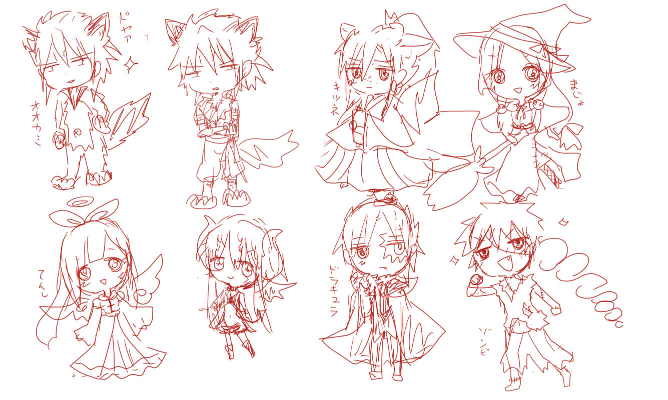 個人的に白瑛さんと紅玉ちゃんがお気に入りです!女の子は描くのも衣装考えるのも楽しいですね。