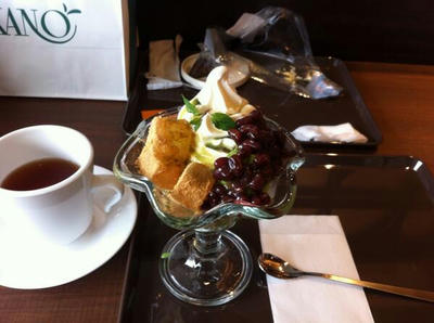 お昼ご飯抜きにする計画を立てていたので、パン食べた後に朝からパフェ食べましたww